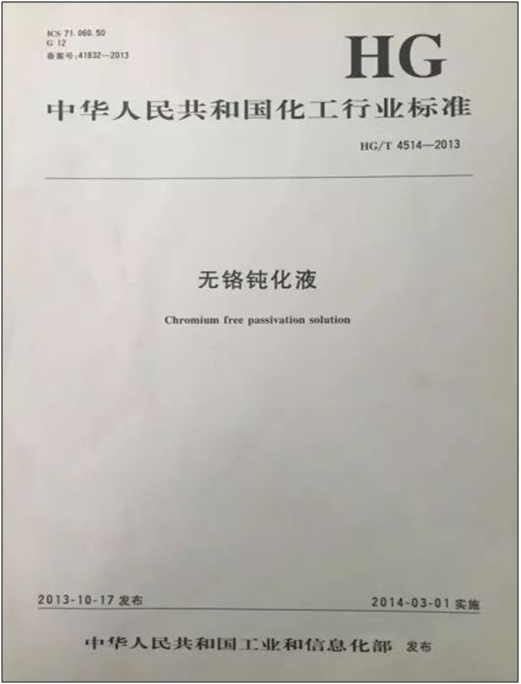 行业标准-无铬钝化液