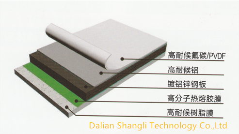 1.上层氟碳+铝箔(0.13m):其作用——耐腐蚀、高耐候、保色层、隔绝紫外线、热反射、减少光污染、径流量污染。